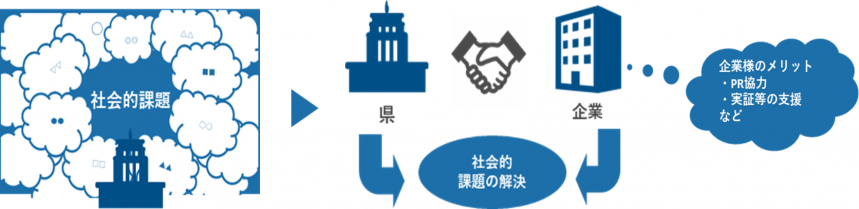 神奈川県では、県民ニーズが複雑化・多様化する中、行政だけで対応することが困難な様々な課題について、企業・大学等のみなさまと手を携え、様々な社会課題の解決を図る「公民連携」に積極的に取り組んでいます。